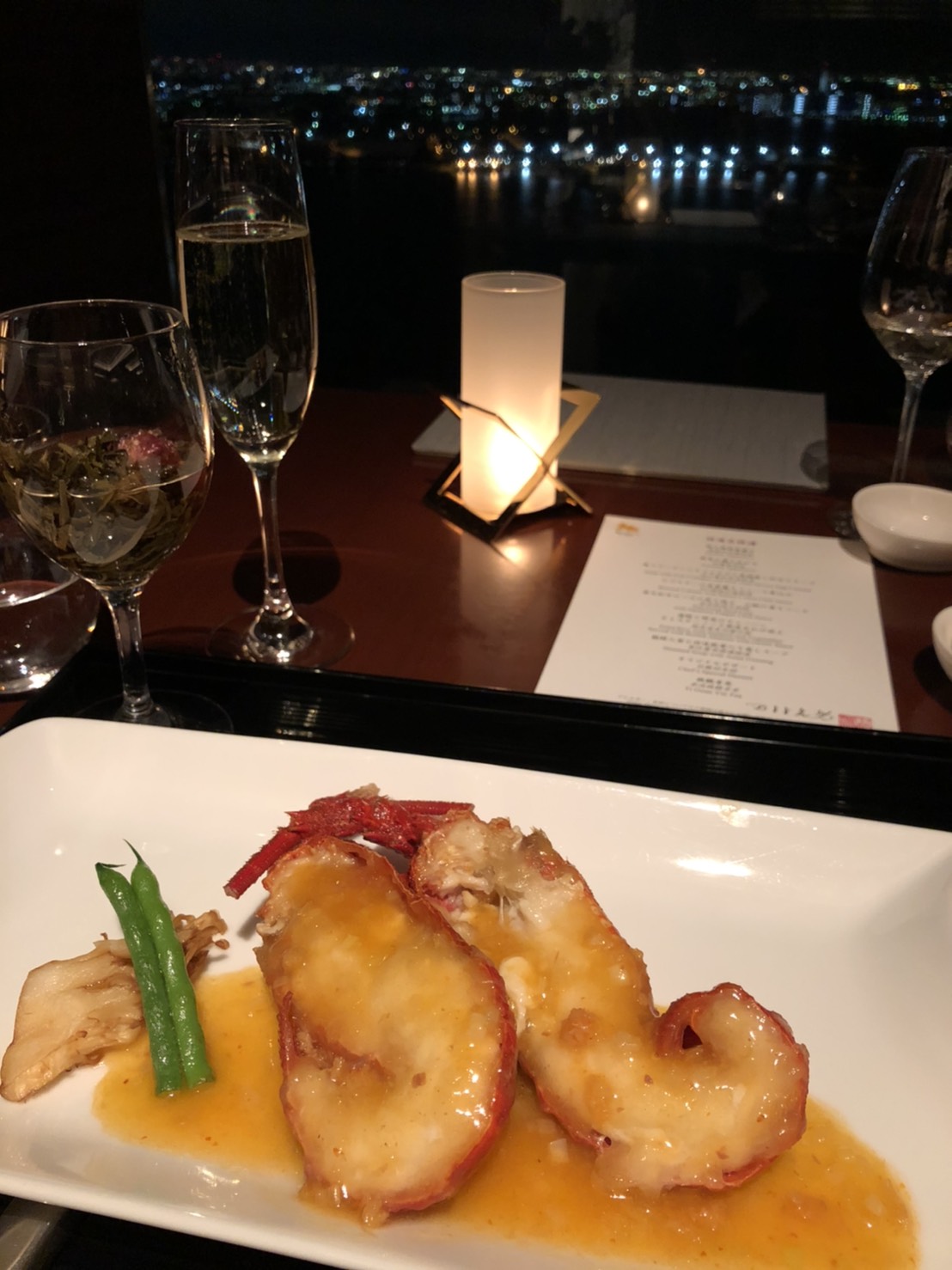 1.焼き物前菜盛り、2.前菜の盛り合わせ、3.魚コラーゲン入りフォアグラ茶碗蒸し仕立てスープ、4.ロブスターの自家製チリソース煮込み、5.黒毛和牛ロースの煎り焼き 山椒の香りソース、6.海鮮と野菜のチャーハン オイスターソース風味あわび添え、7.朝鮮人参と珍味乾貨入り蒸しスープ、8.オリジナルデザート、9.鉄観音茶、というコースなのだが、一番美味と思ったのは最初の「焼き物前菜盛り」の中にあった焼き豚。焼き豚はロブスターやアワビ、朝鮮人参といった高級食材とは異なり、家でも気軽によく食べている料理なのだが、味付けや焼き加減が異なるのかとても美味しく感じた。それに対して高級食材の方は最初から食べ手側のハードルが高くなっていたからか、特段の驚きや感動を得ることはできなかった。