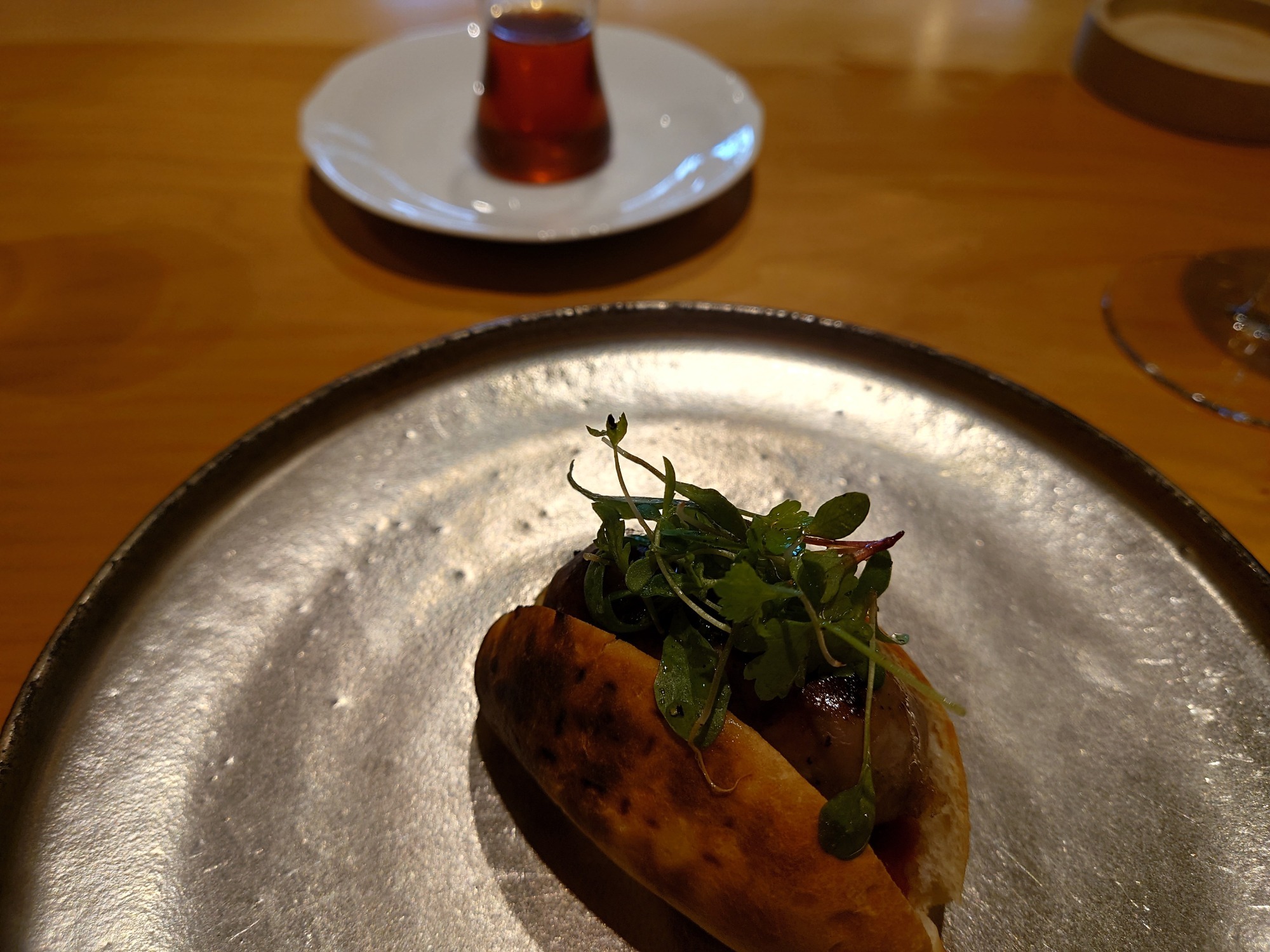 料理も鮎や鱧、イサキといった魚と赤鶏、ジャガイモやチーズなど食材一つ一つに拘りが感じられ、調理にもシェフの創意工夫があり料理に対して真摯に向き合っているんだろうなと思いが伝わってくる。ただ、これはセンスの問題なのだろうか、どの料理もボヤッとしていてもっと食べたいと思わせるような料理が少なかった。中で一番美味だったのが、自家製のパンとドルチェ。パンは美味しくておかわりしてしまった。