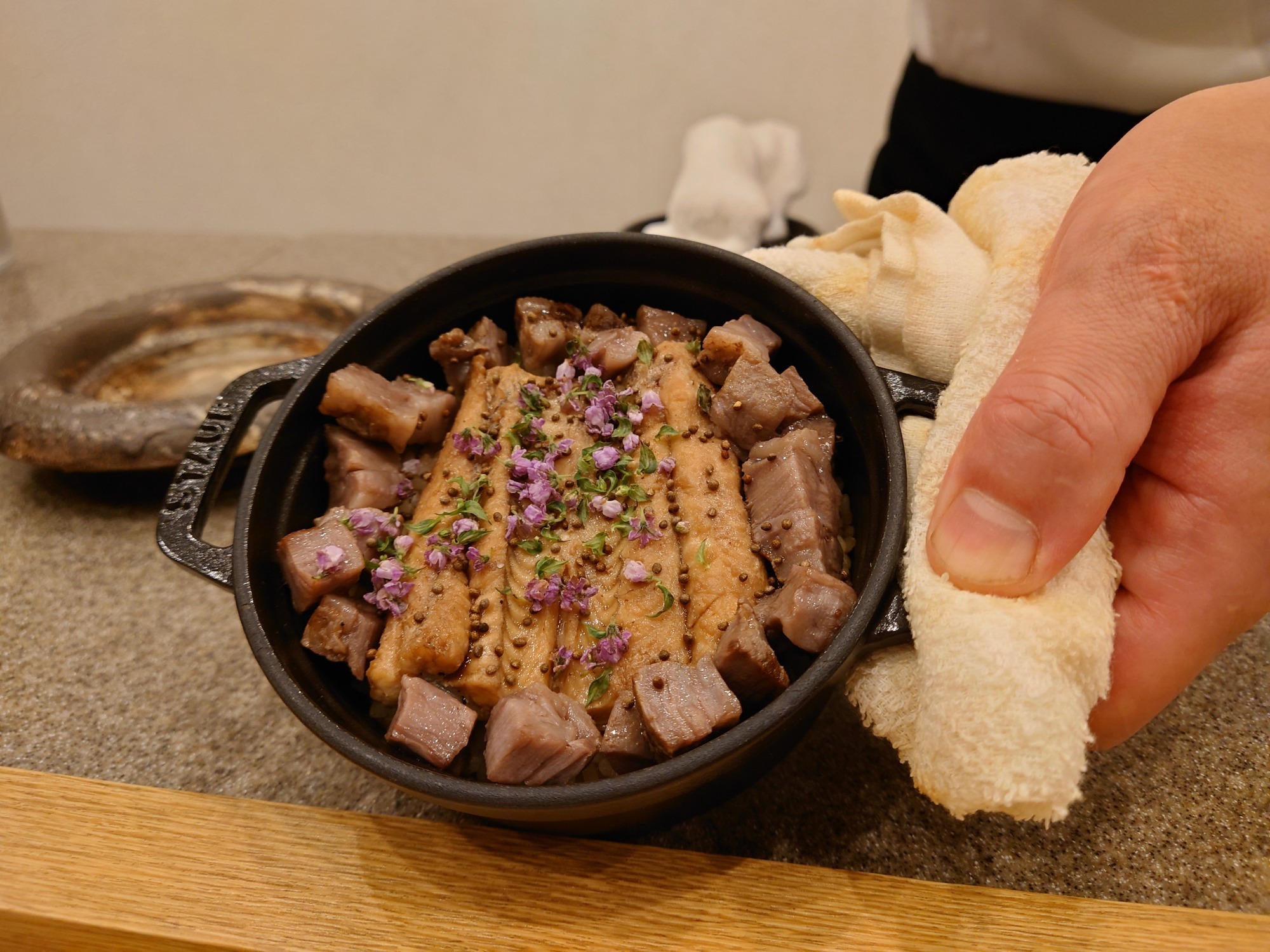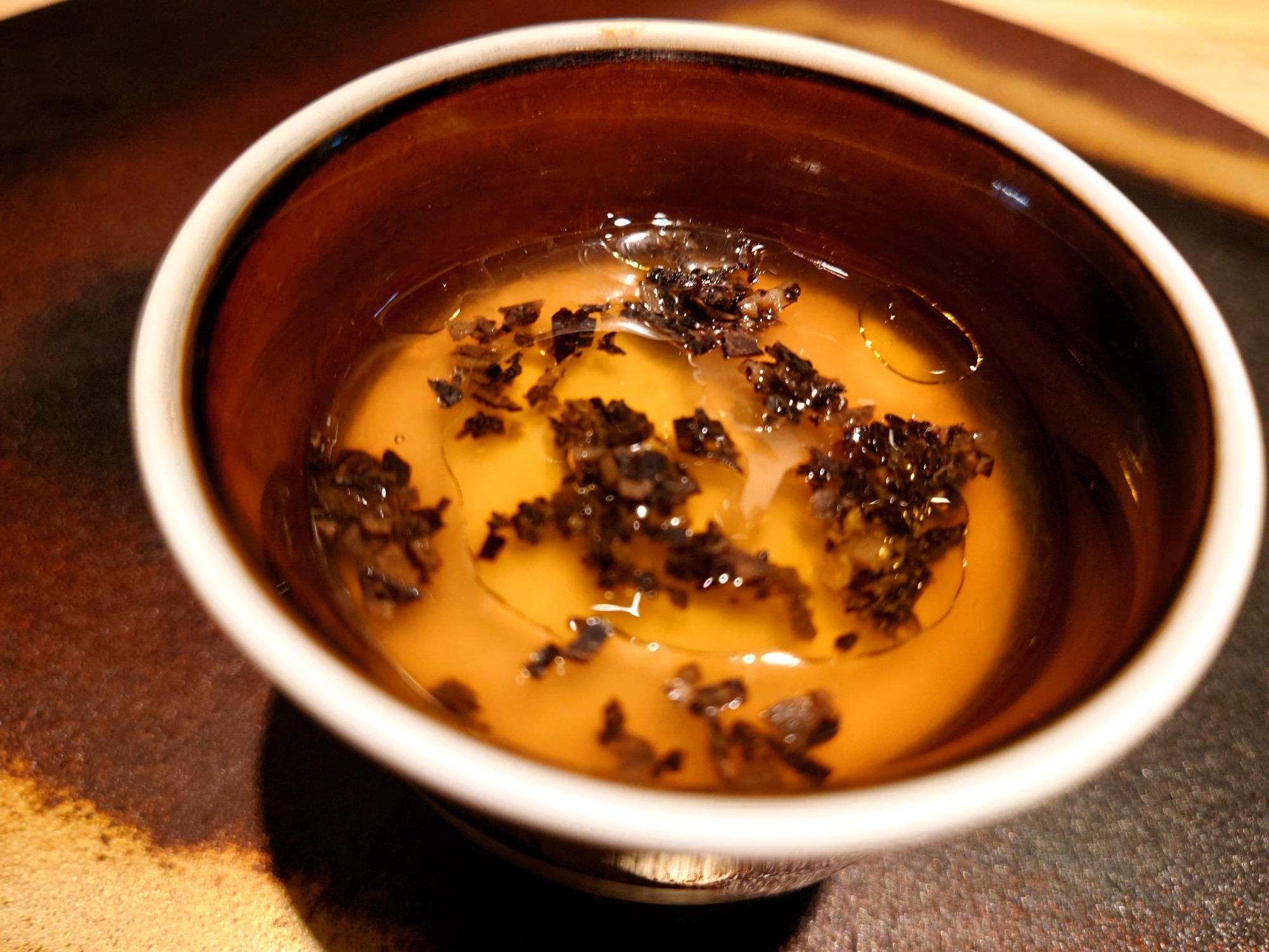 「フォアグラの茶わん蒸しトリュフの香り」、「和牛カツレツ、生ウニ、キャビア、泡醤油」、「ノドグロと野菜」、「鱧」などこれでもかと高級食材のオンパレード。器や盛り付けも高級感や特別感を見事に演出している。スペシャルメニューの「極みおでん」だが、これはちょっといただけない。普通のおでんの方がはるかに旨い! 見た目見事な茶わん蒸しや和牛カツレツも、今一つ味がぼんやりとしている。こだわりの米も特別な美味しさは感じなかった。 一番美味しかったのは、山崎のロックを除けば最後のデザートだった。